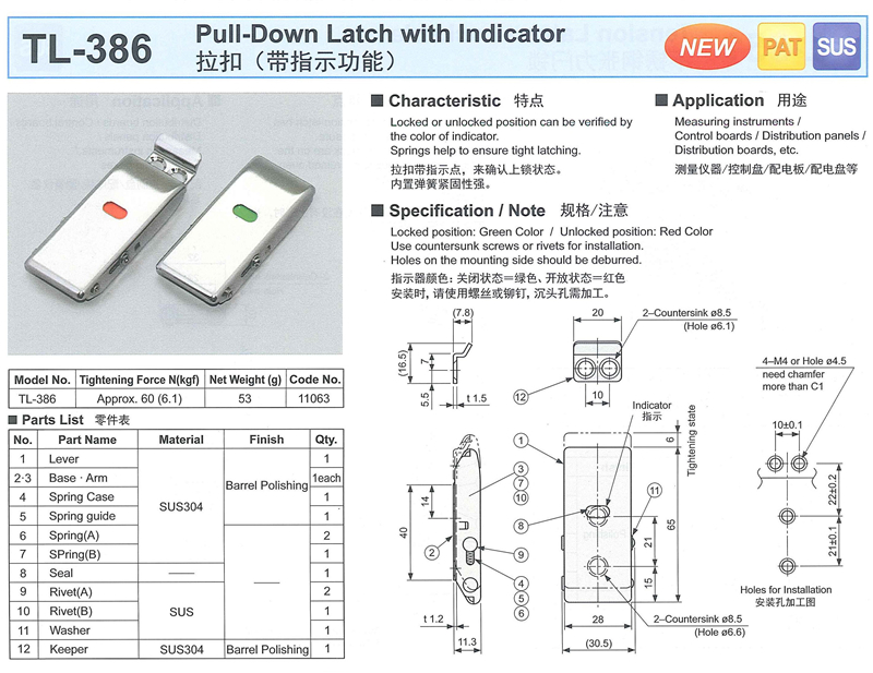 Tochigiya 枥木屋 TL-386 拉扣(带指示功能)