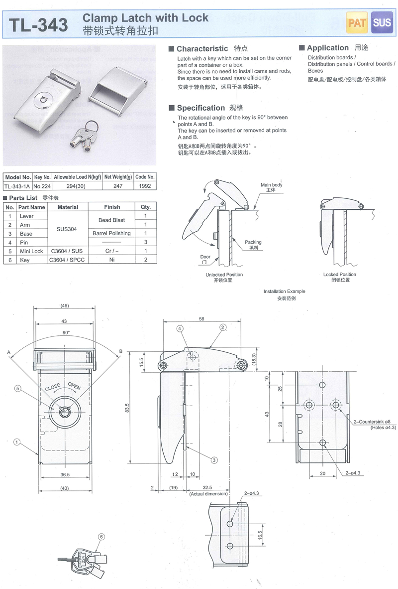 名称:TL-343 带锁式转角拉扣