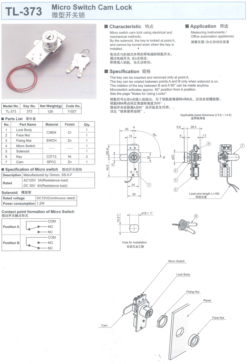 名称:TL-373 微型开关锁