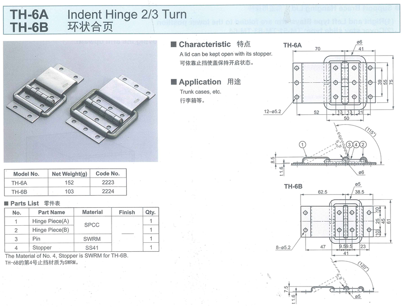 名称:TH-6A TH-6B 环状合页