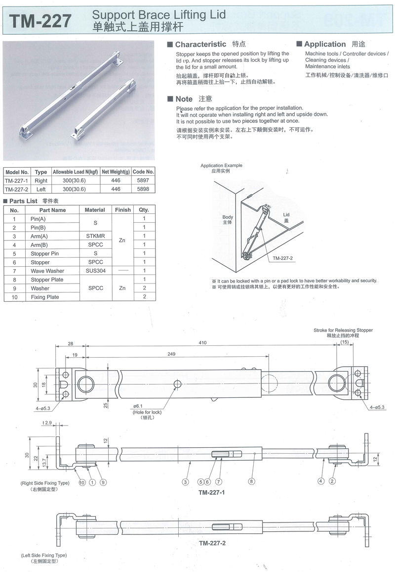 TM-227 单触式上盖用撑杆