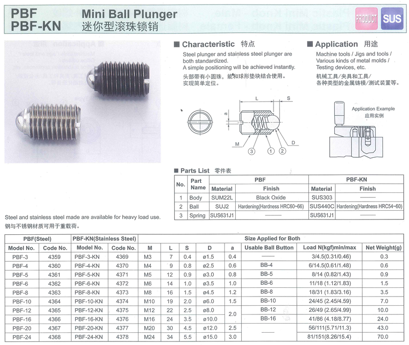 Tochigiya 枥木屋 PBF PBF-KN 迷你型滚珠锁销