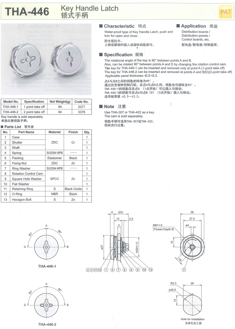 名称:THA-446 锁式手柄