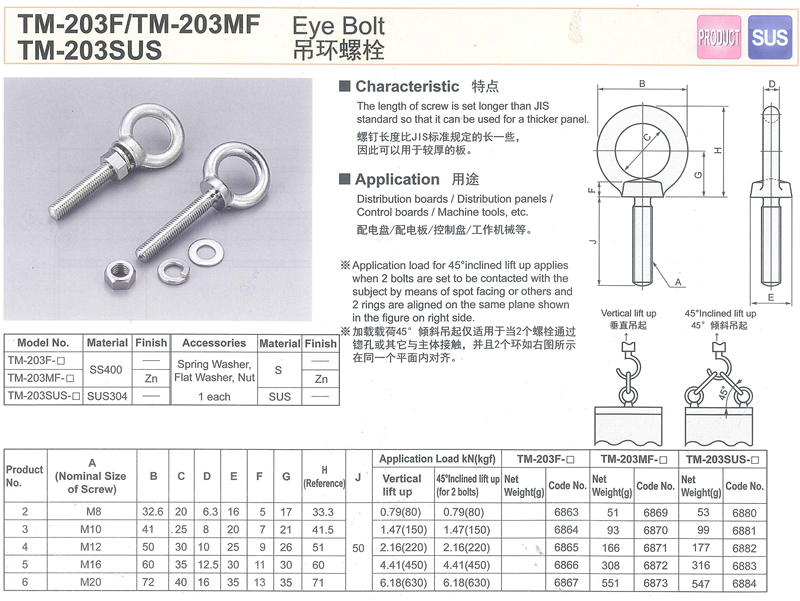 Tochigiya 枥木屋 TM-203F/TM-203MF TM-203SUS 吊环螺栓